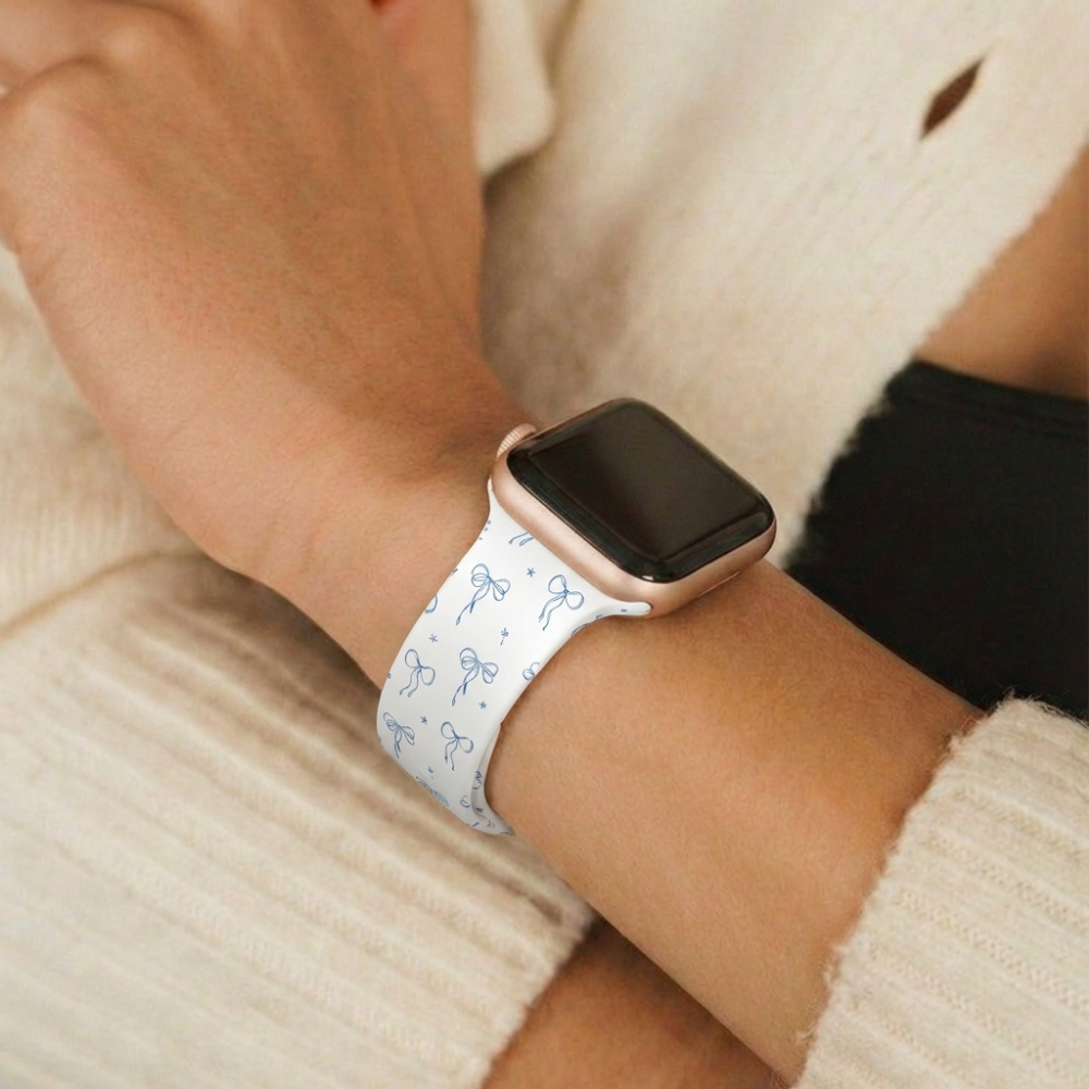 Featuring a crisp white band sprinkled with dainty blue bows, it’s the perfect blend of playful and polished. Whether you're dressing up your wrist for brunch or bringing a little joy to your everyday look, this strap adds just the right amount of whimsy to your tech.