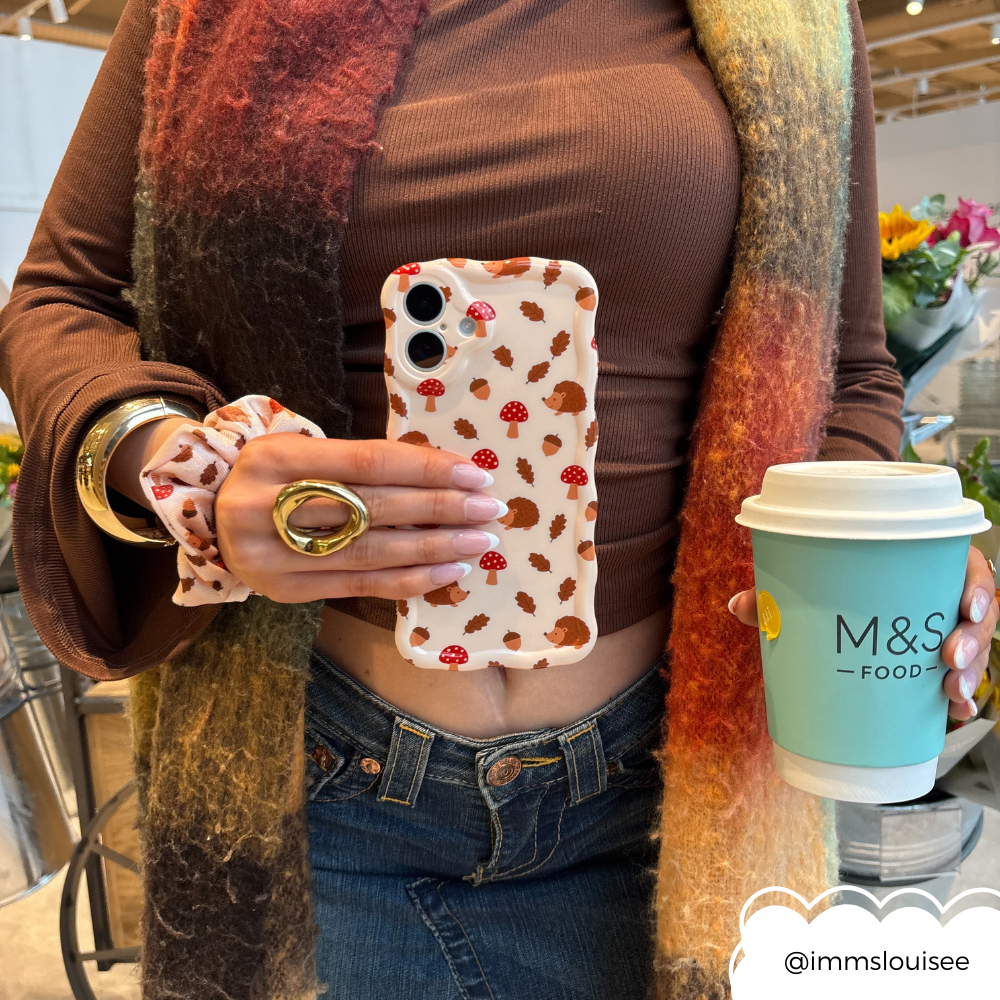 Featuring the loveliest little toadstools and a few spiky-but-sweet hedgehogs, this design is a nod to all the charm of a countryside wander. The wavy edges give it a playful twist, while the sturdy build keeps your phone safe as you head out for autumn strolls or cosy nights in.