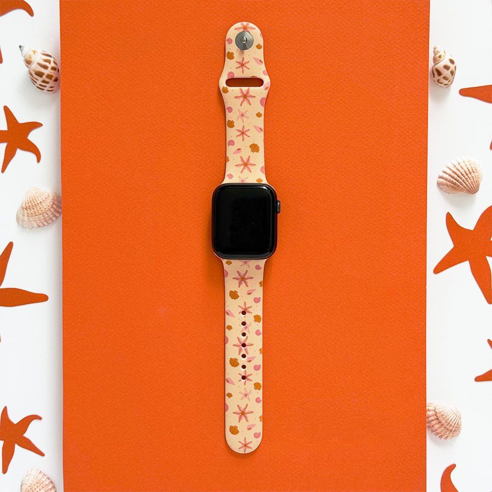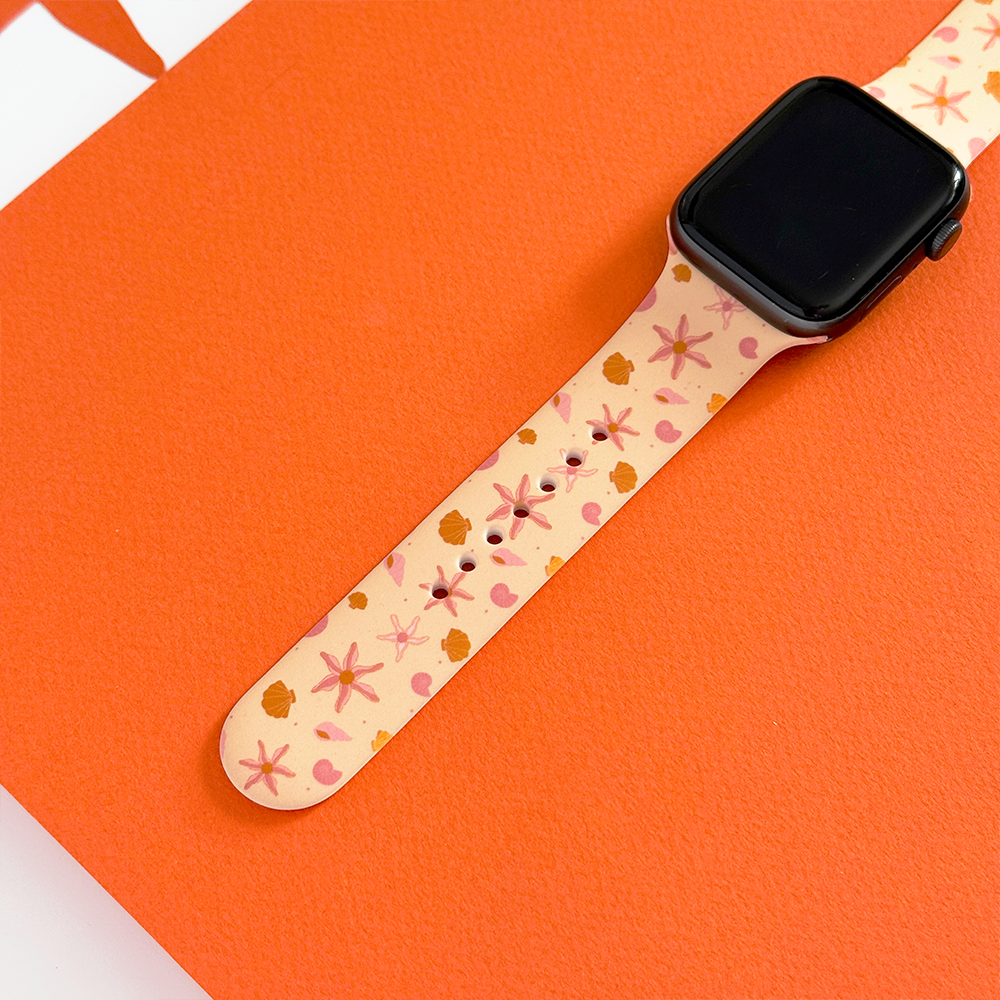 Featuring a dreamy palette of soft peach tones and playful starfish and seashell design, this strap is your perfect companion for sunny days, beach walks, and daydreams of salty air. Made for comfort and cuteness, it’s the ideal way to give your Apple Watch a splash of personality. 🌊✨