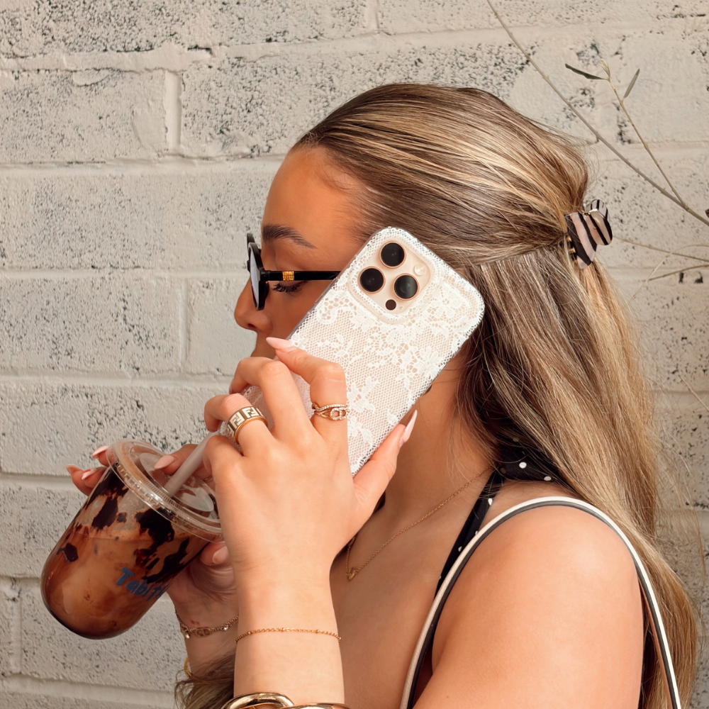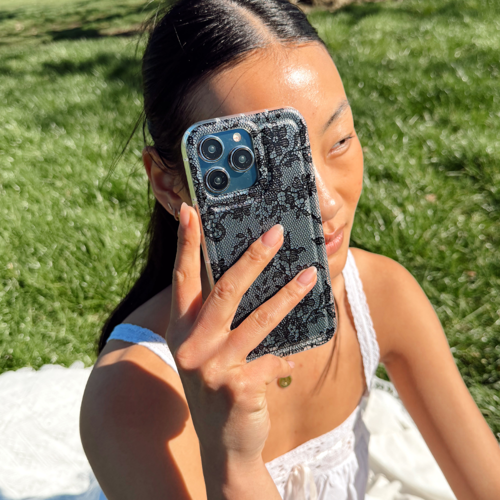 Take your outfit cues all the way to your phone. The Clear Phone Case in Black Lace channels the timeless trend of lace, layered over a clear base, so your phone still peers through. Think of it like your fave pair of sheer lace tights for your tech - romantic, elevated and feminine.
