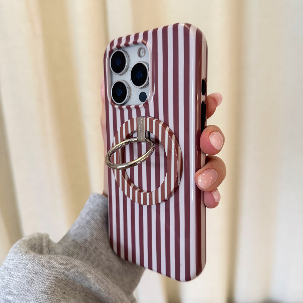 Designed with a chic brown stripe print, this sleek phone grip adds both style and practicality to your MagSafe-compatible setup.